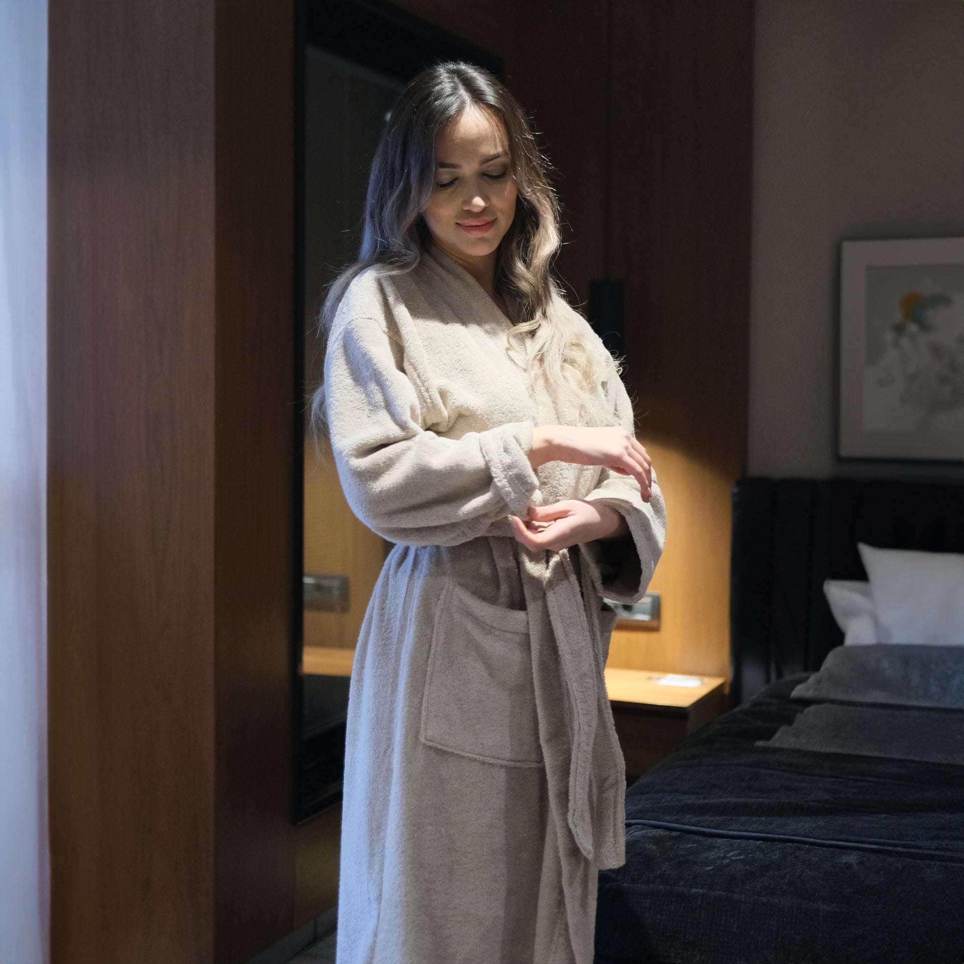 Unisex-Bademantel aus 100 % Bio-Baumwolle – Beige